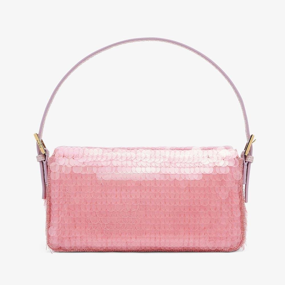 Medium Baguette bag 1997 made of pink satin with all-over delicate sequinned embroidery embellished with FF fastening with enamel details.