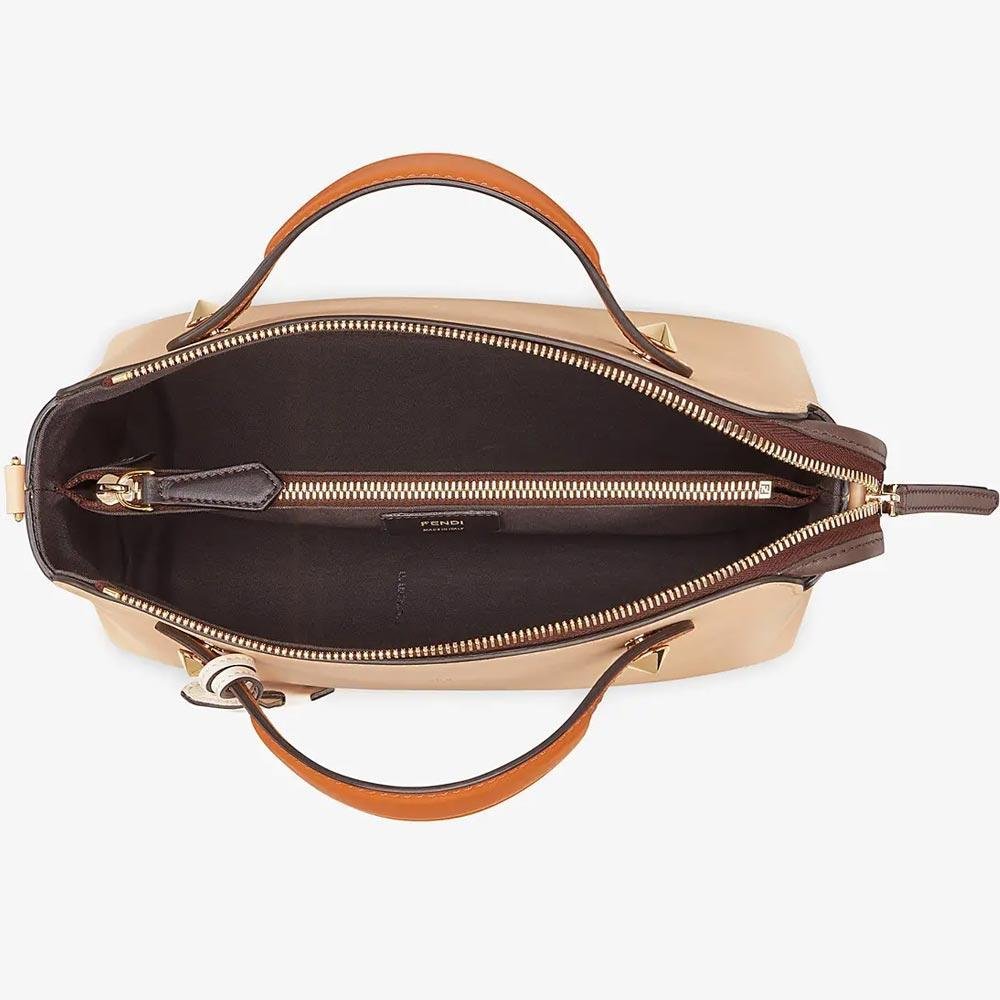 Iconic medium By The Way Fendi Roma Boston bag, made of beige leather with a zip fastening.