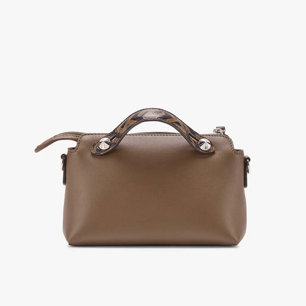 Iconic mini By The Way Boston bag made of brown leather with zip fastening.