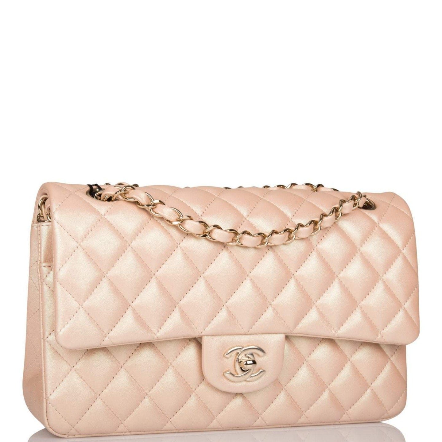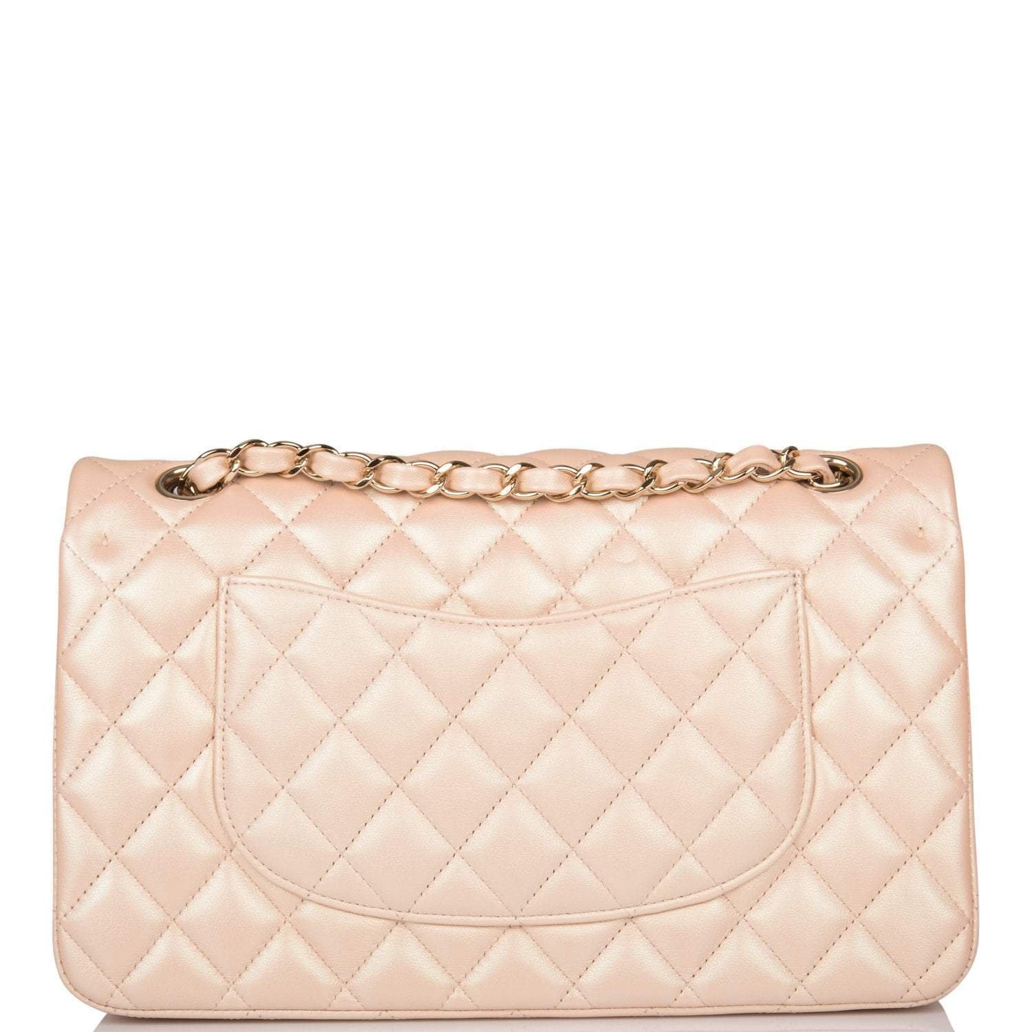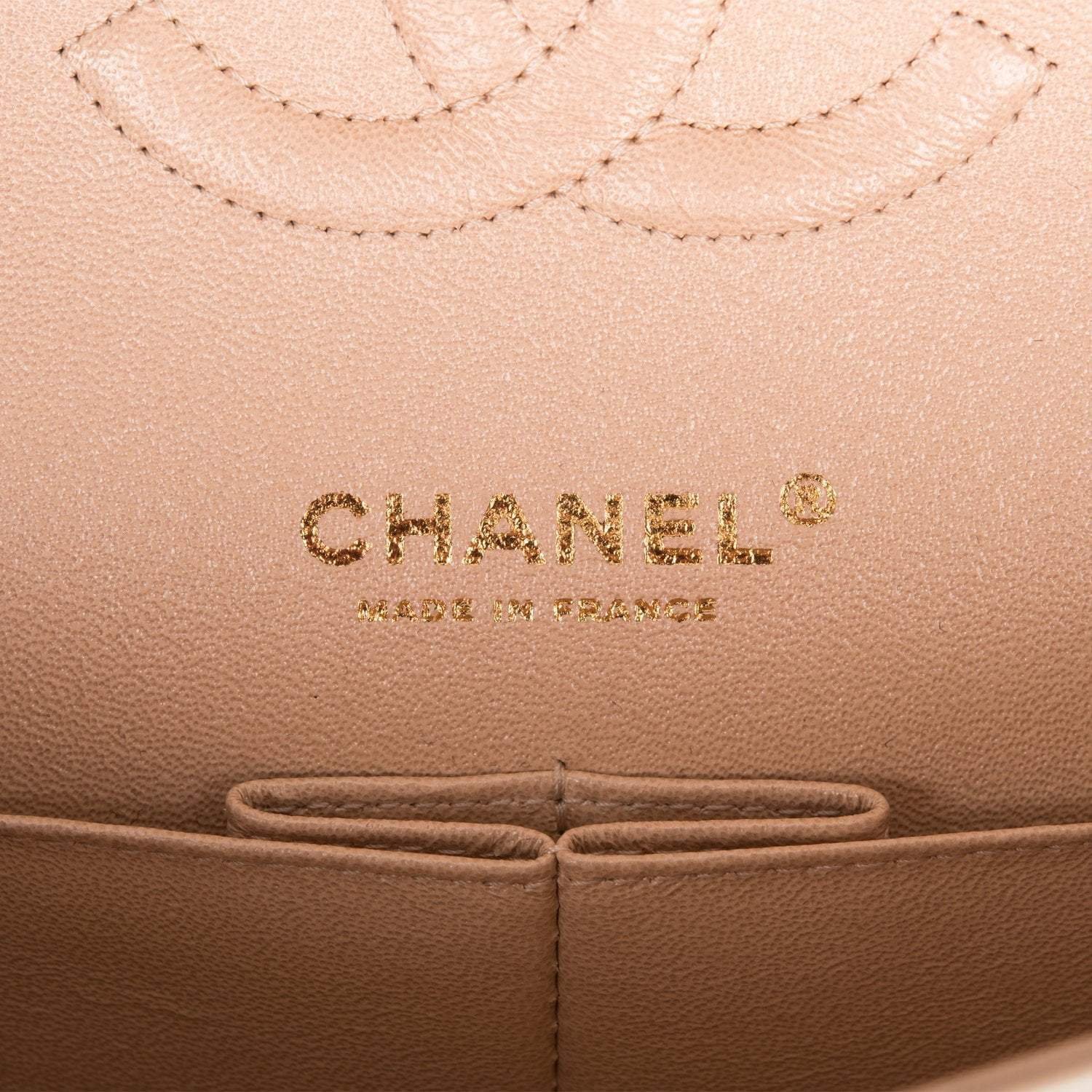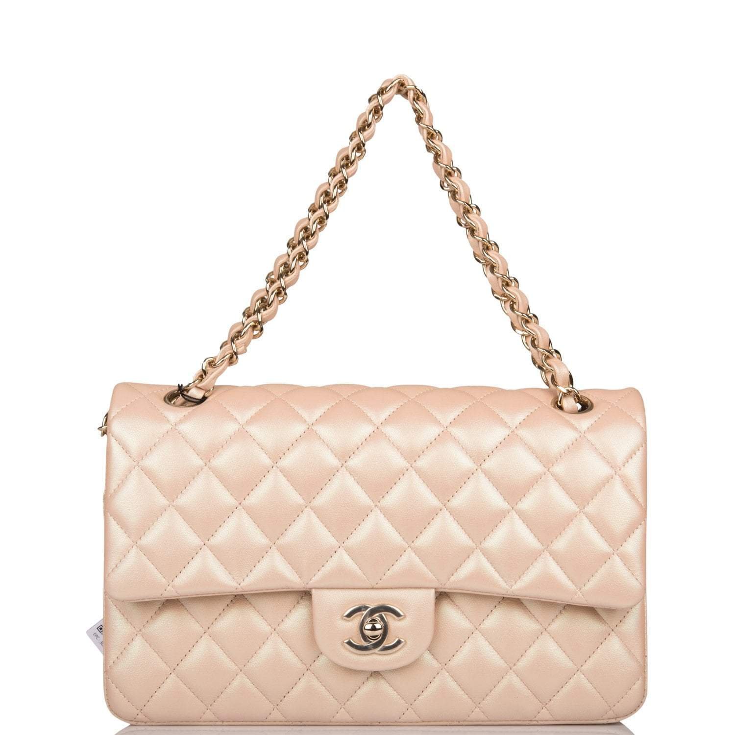 Chanel Medium Classic Double Flap Bag Beige Iridescent Calfskin Light Gold Hardware
