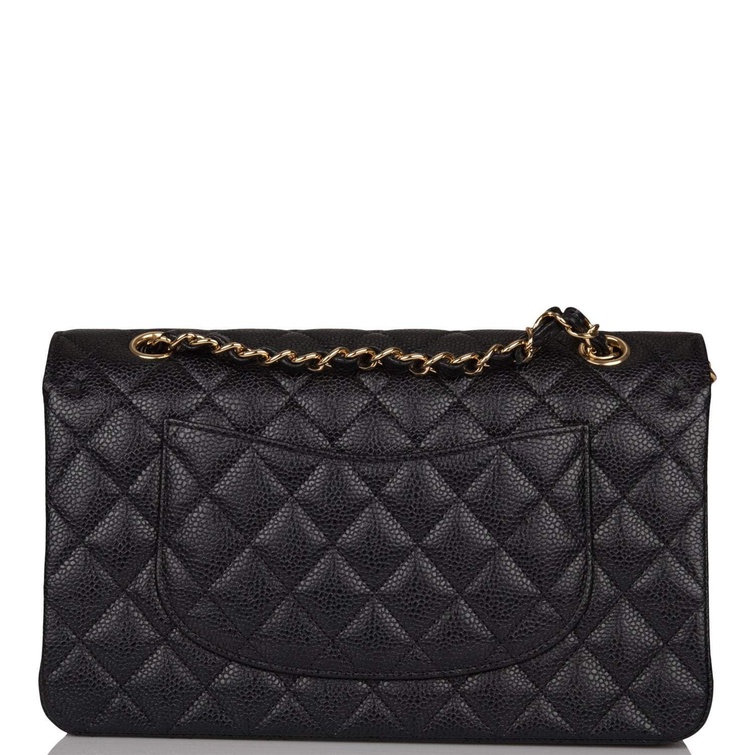 Chanel Medium Classic Double Flap Bag Black Quilted Caviar Gold Hardware
