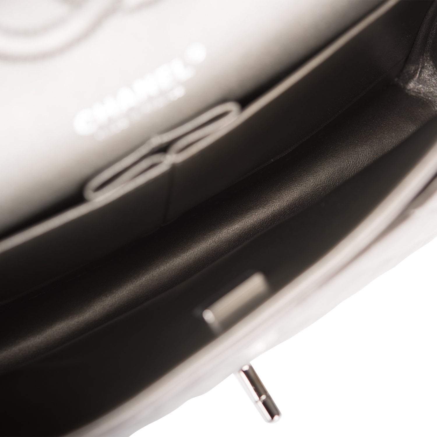 This Medium Classic Double Flap bag is in ruthenium lambskin leather with ruthenium hardware and features a front flap with signature CC turnlock closure, half moon back pocket, and adjustable interwoven ruthenium chain link and ruthenium leather shoulder strap.