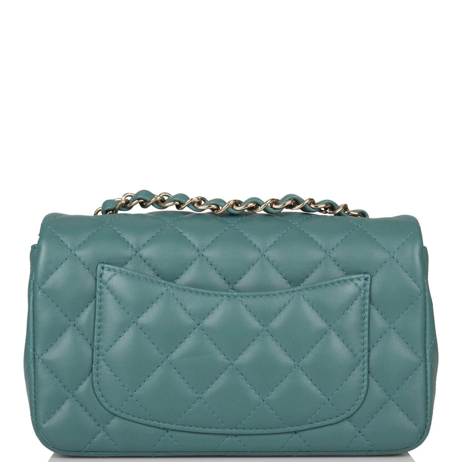 Chanel Mini Rectangular Flap Bag Green Lambskin Light Gold Hardware