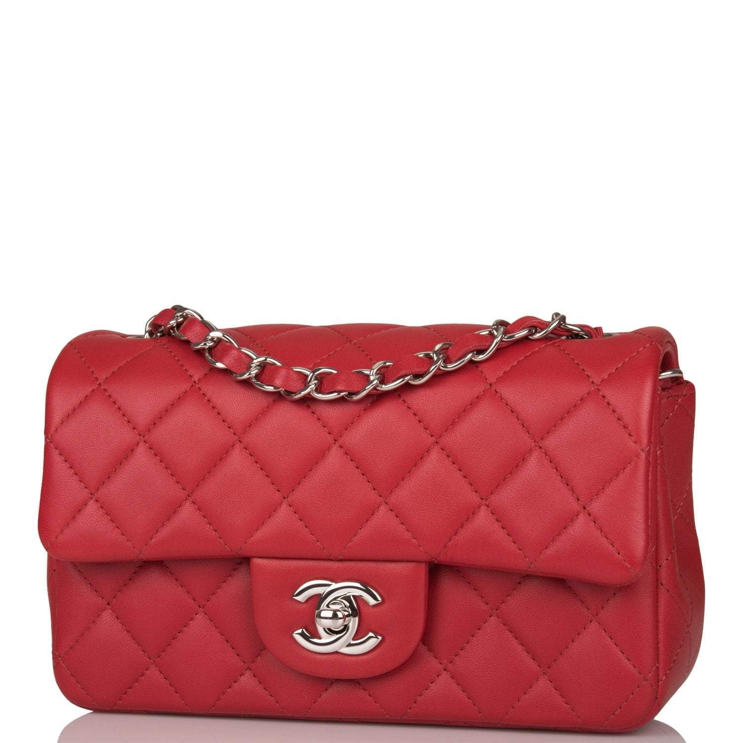 Chanel Mini Rectangular Flap Bag Red Lambskin Silver Hardware