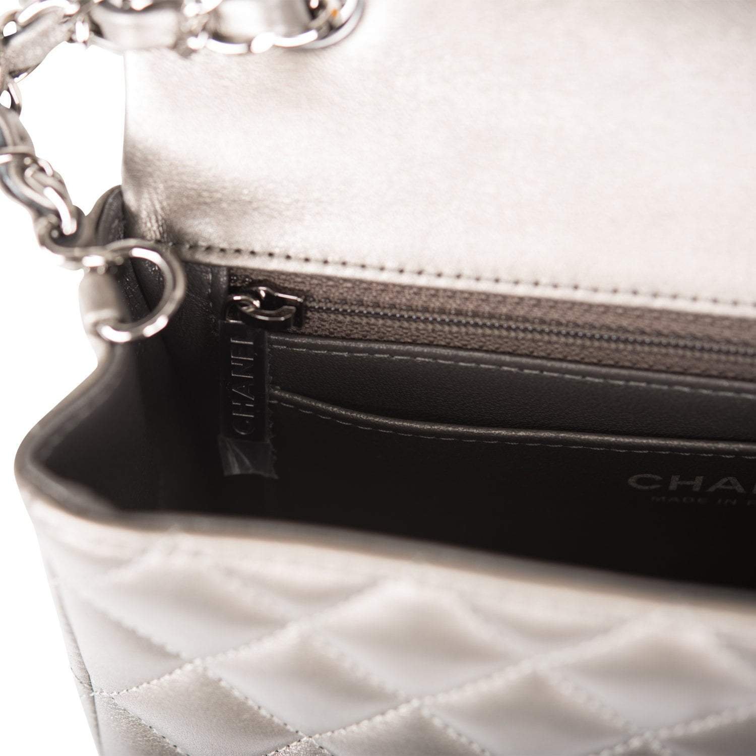 Chanel Mini Rectangular Flap Bag Ruthenium Lambskin Silver Hardware