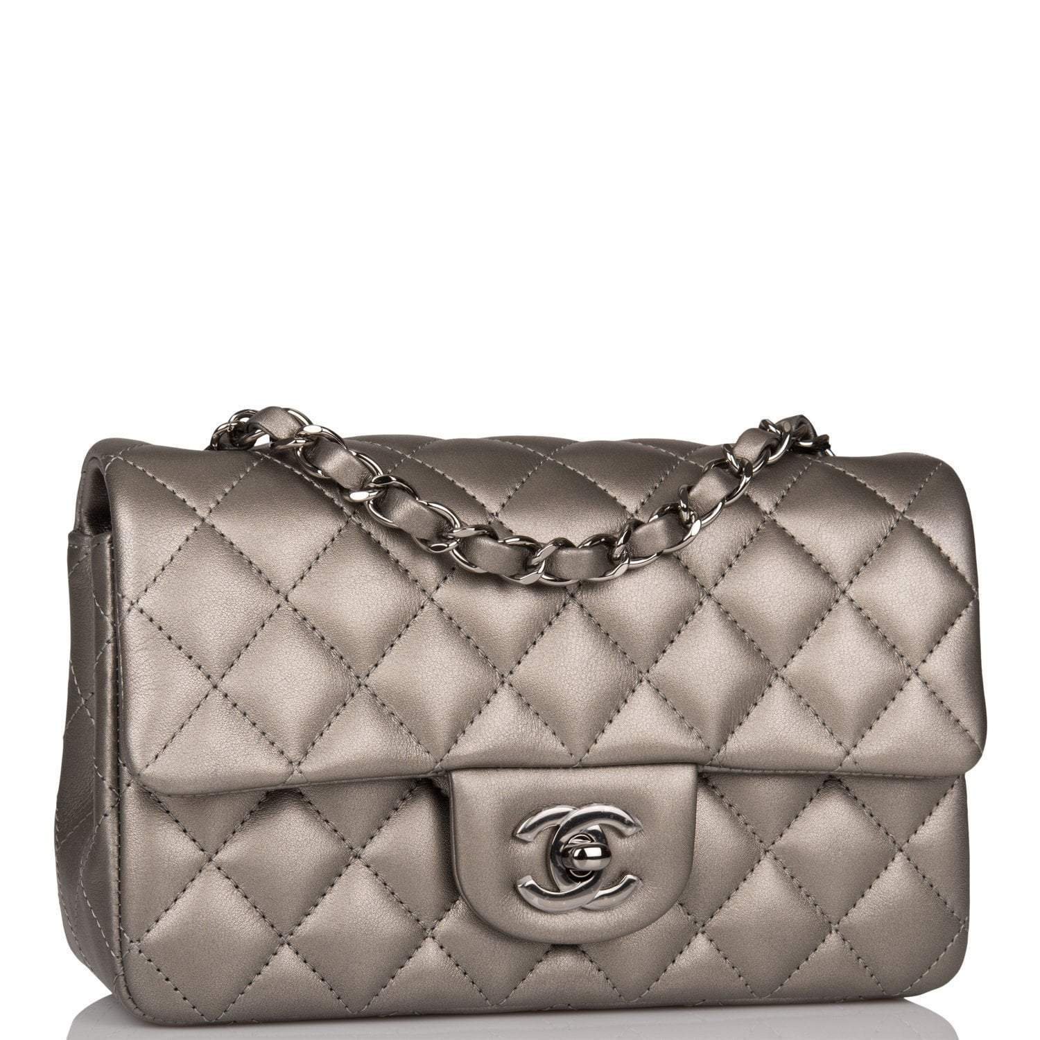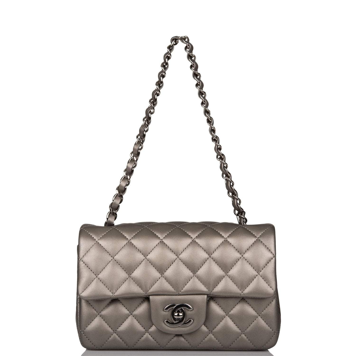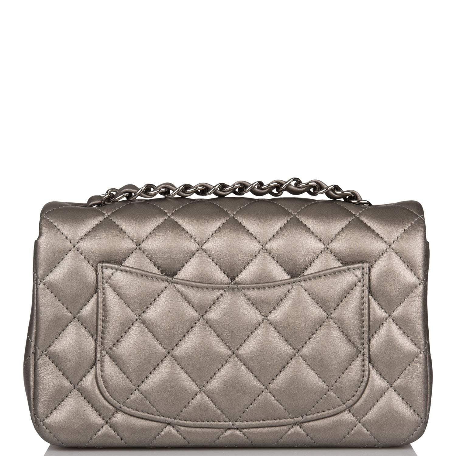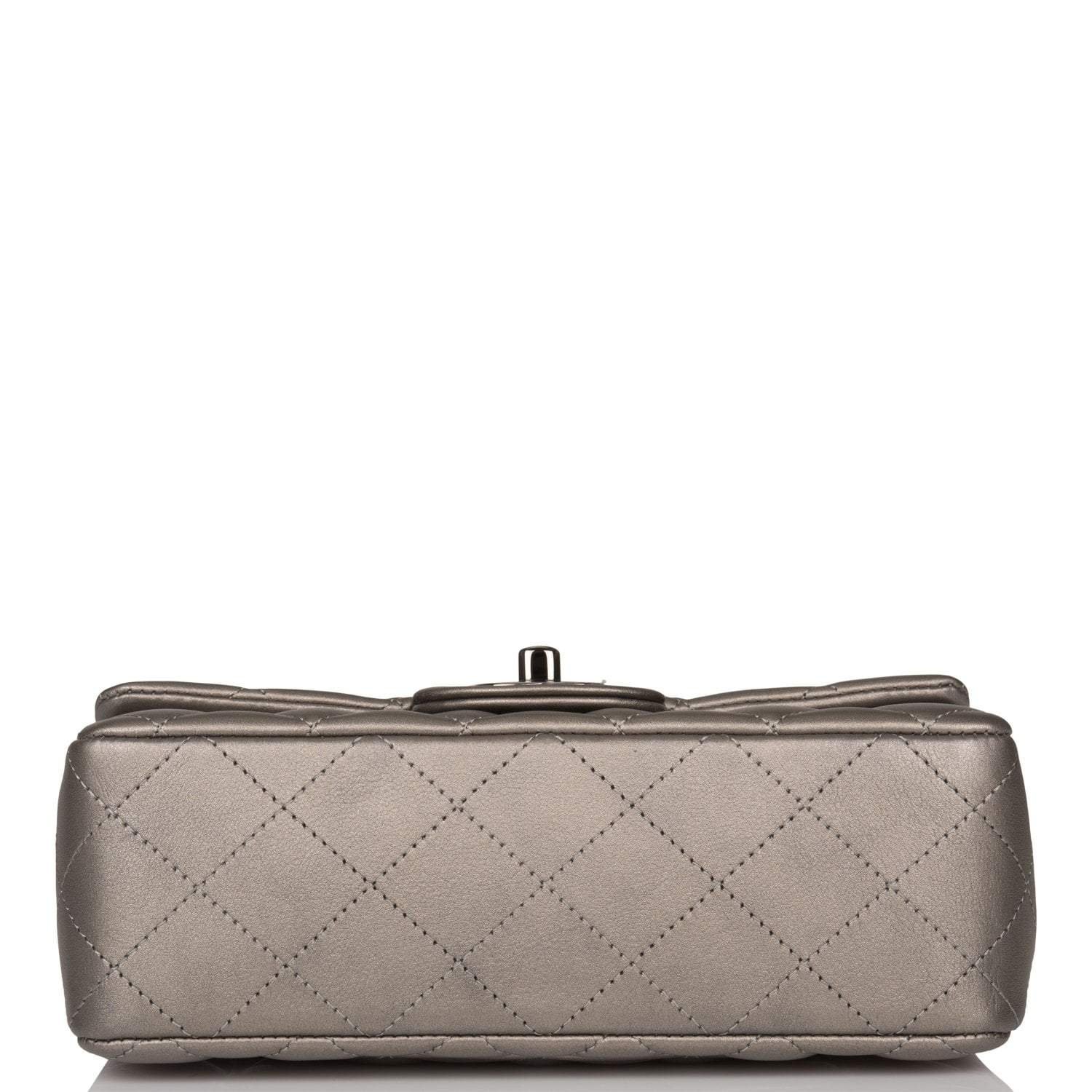 Chanel Mini Rectangular Flap Bag Ruthenium Metallic Lambskin Silver Hardware