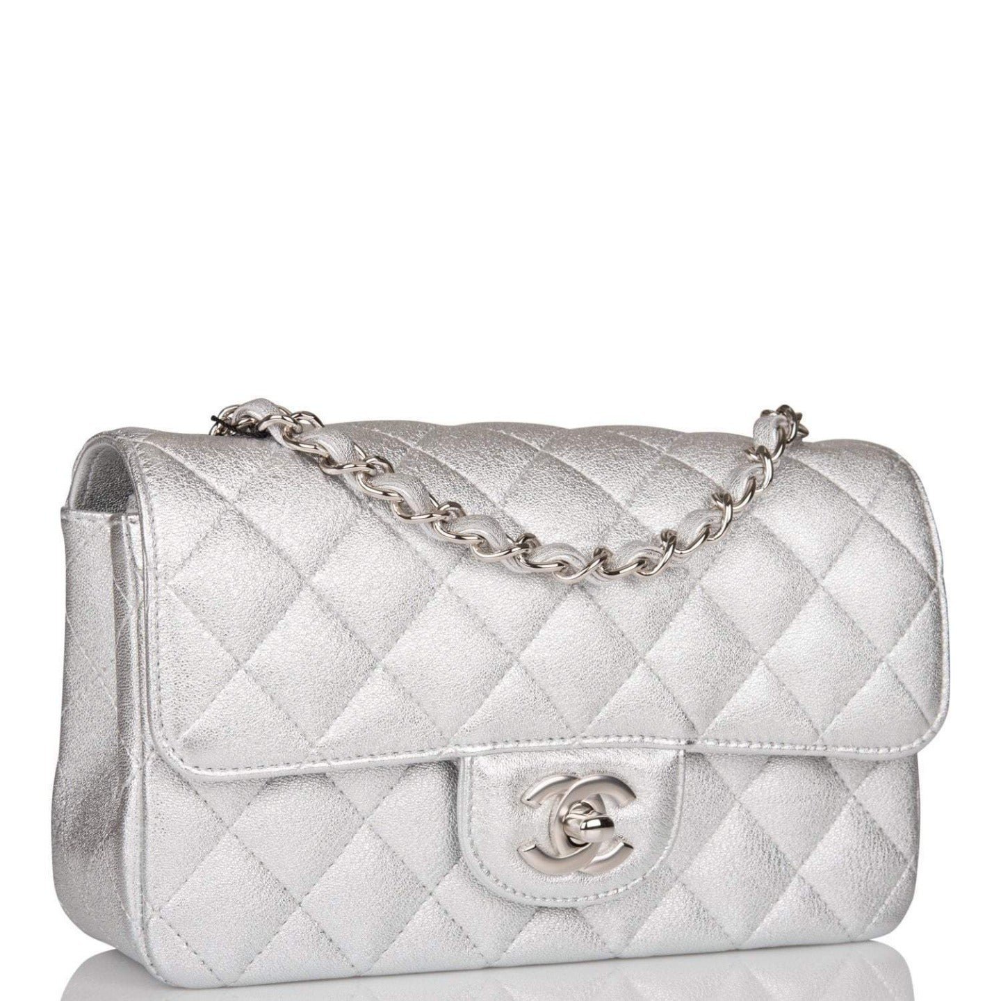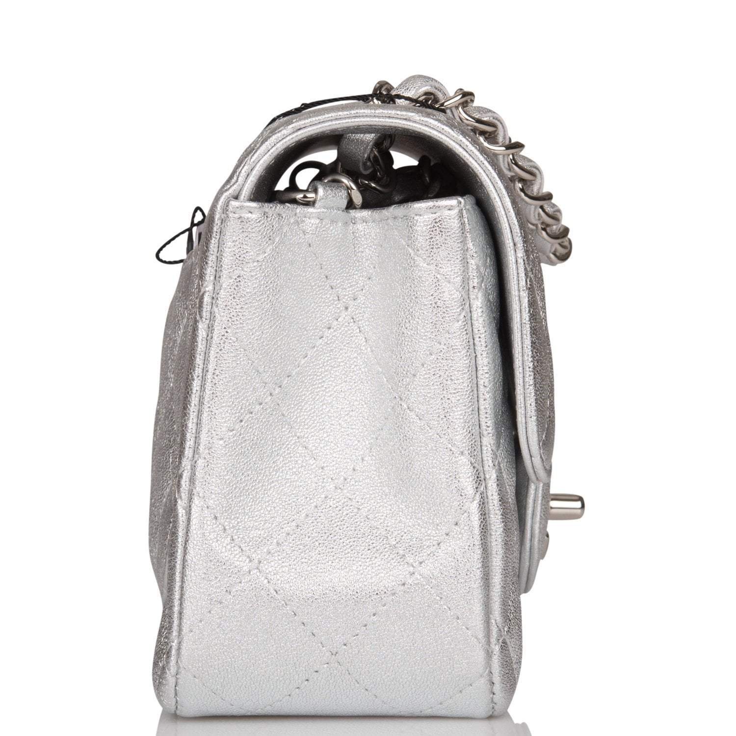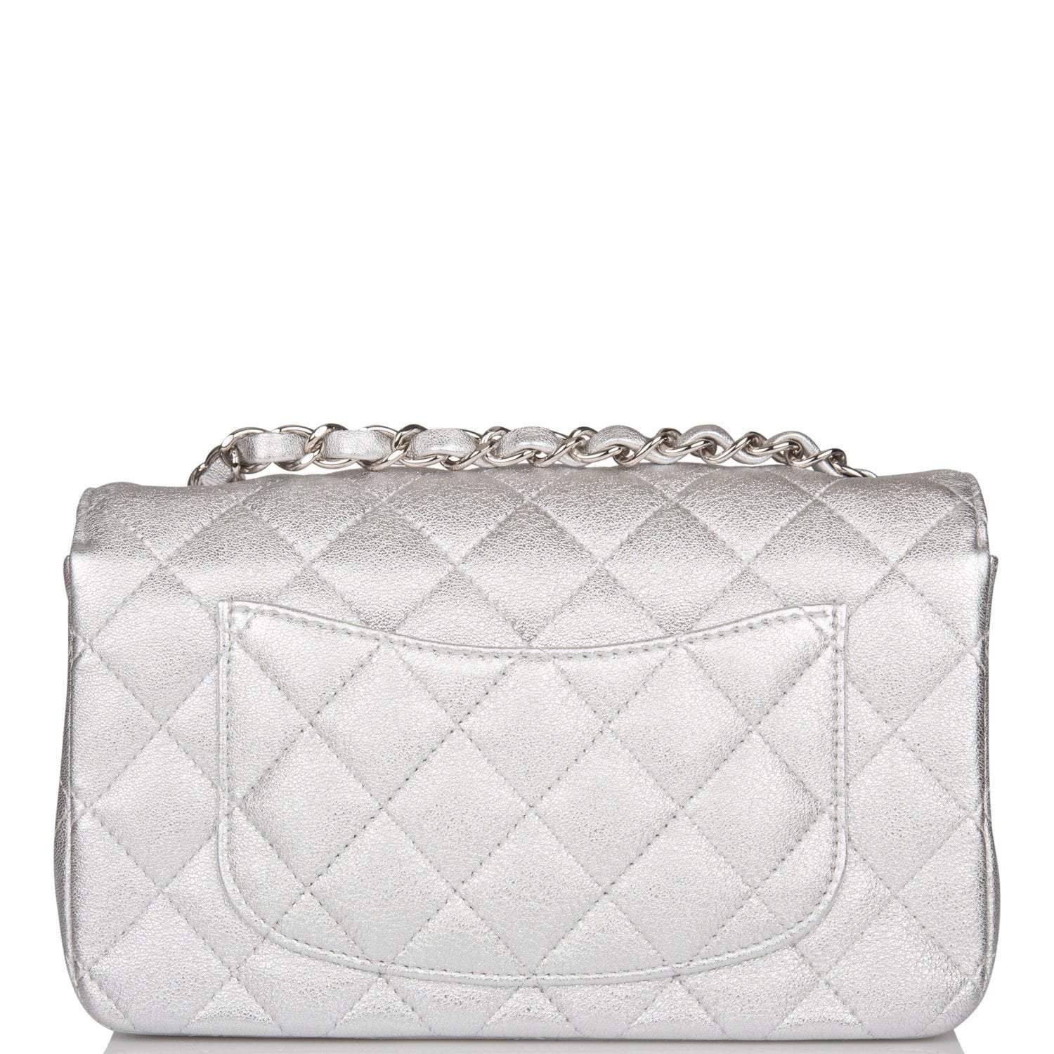 Chanel Mini Rectangular Flap Bag Silver Metallic Lambskin Silver Hardware