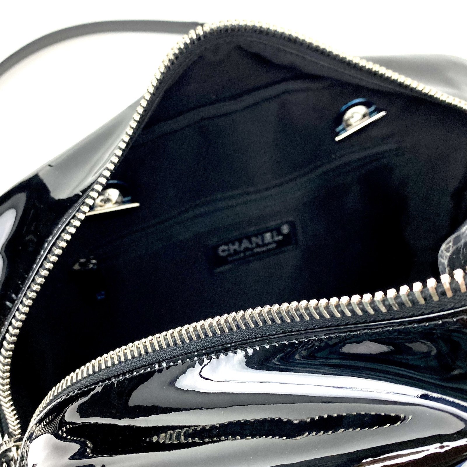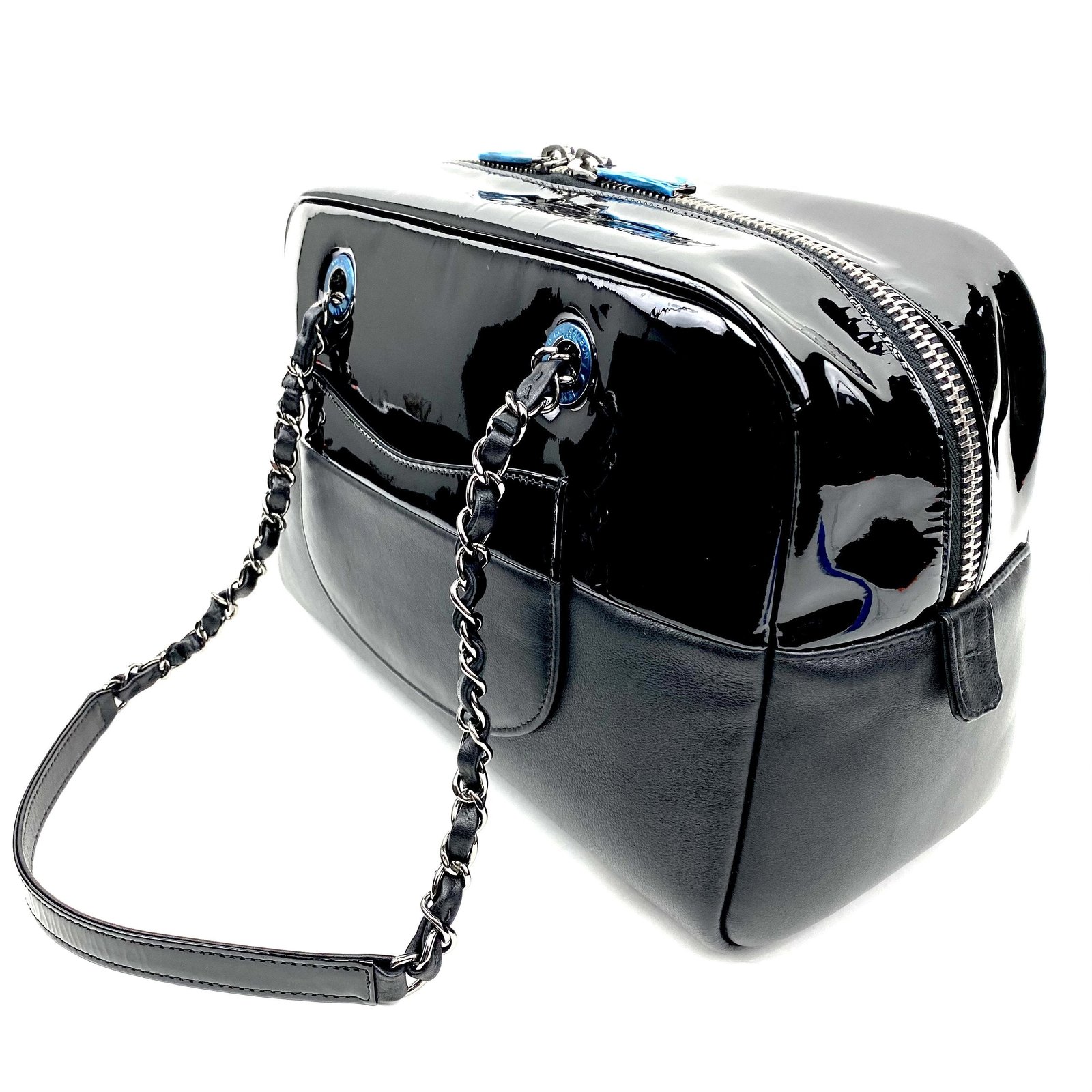CHANEL Patent & Lambskin Leather Bowling Bag