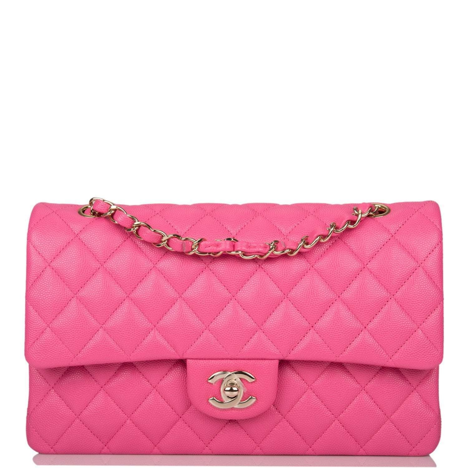 Be the first to review “Chanel Pink Quilted Caviar Medium Classic Double Flap Bag Light Gold Hardware”