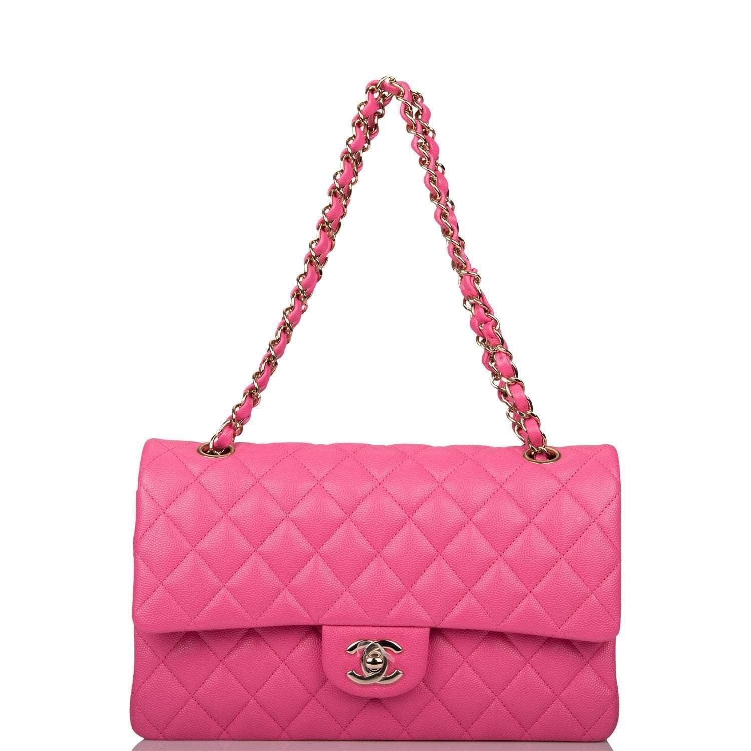 Chanel Pink Quilted Caviar Medium Classic Double Flap Bag Light Gold Hardware